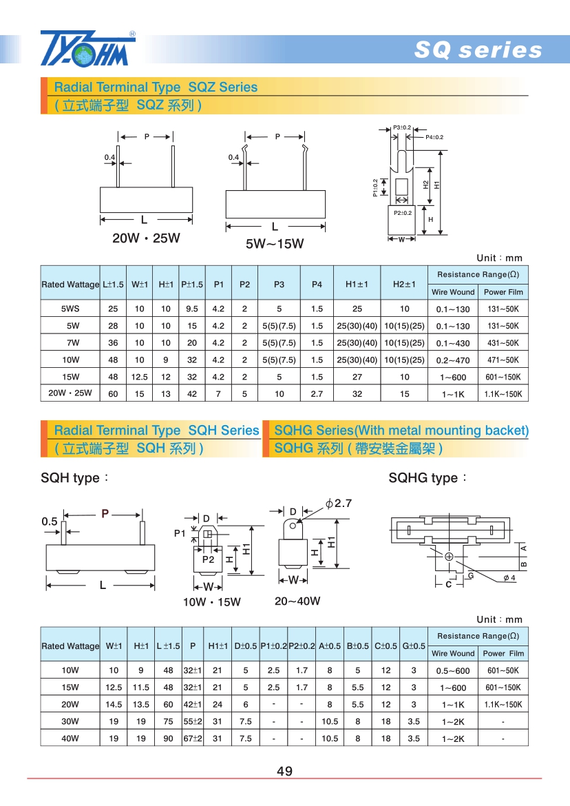 6、耐短時間超負載,低雜音,阻值經年無變化。